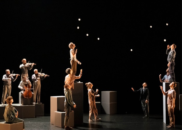 La musique d'Henry Purcell dialogue avec celle de Marc Mellits, tandis que les jongleurs dessinent des figures qui semblent suspendues dans le temps.
