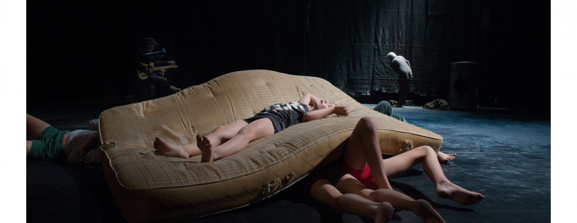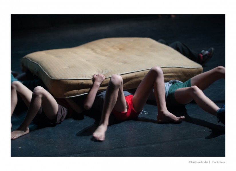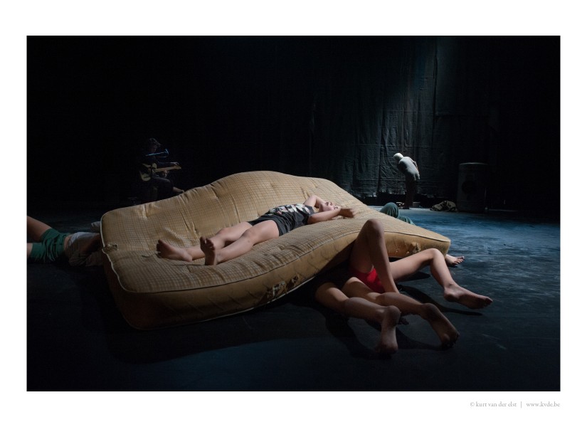 Une bande de gamins envahit le plateau sur les riffs du guitariste Thomas Devos. De petits guerriers, de petits survivants ? Comment résister à l’adversité du monde tout en restant joyeux ? Comment être un enfant même quand cela semble impossible ?