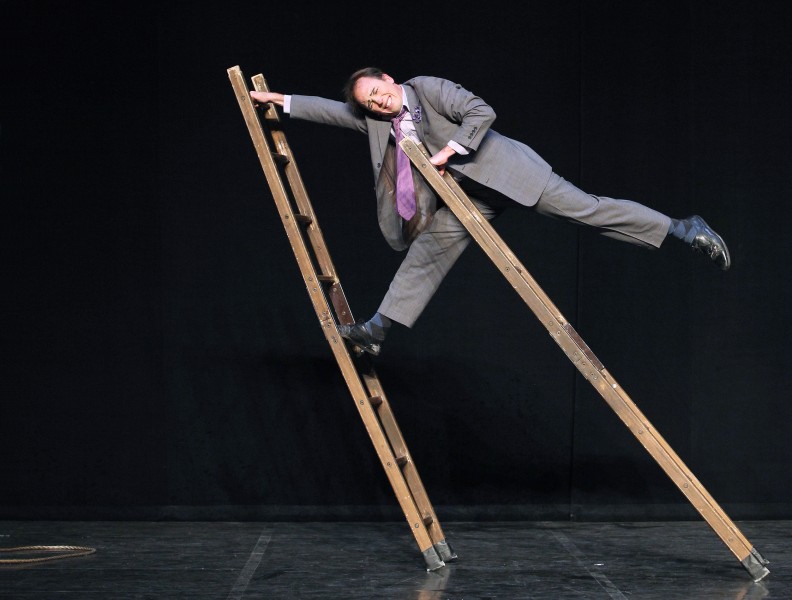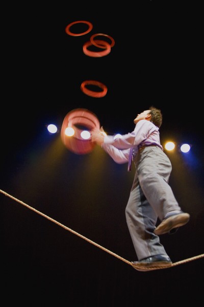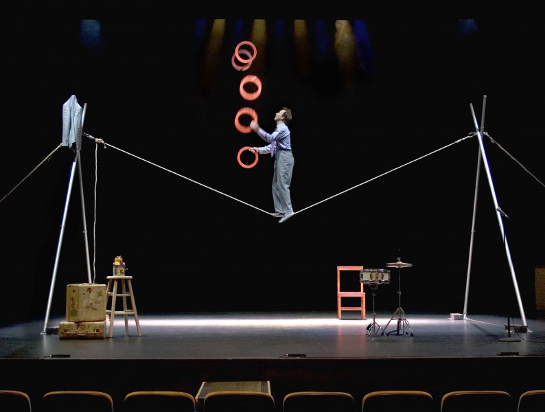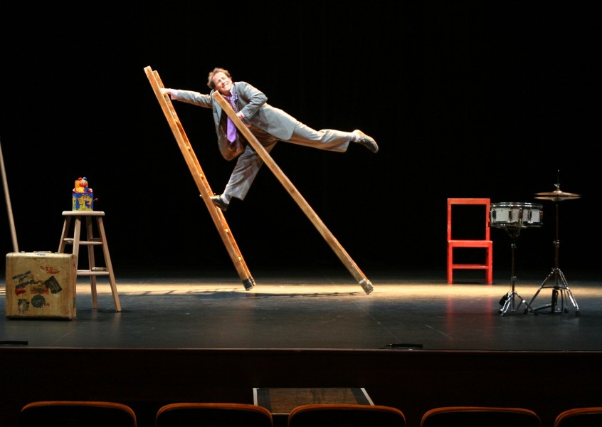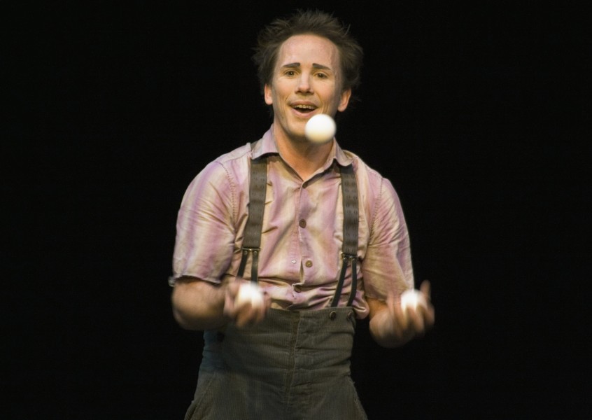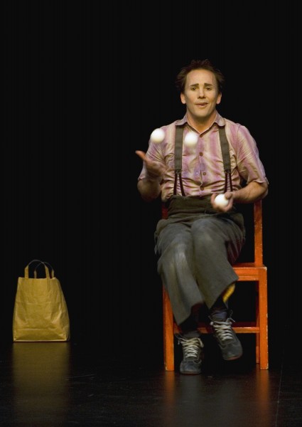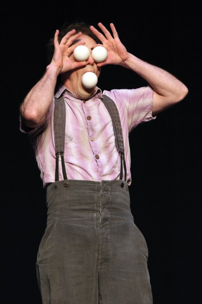 Poète aux mille et une inventions, il fascine les adultes comme les enfants, réinventant chaque soir un univers irrésistible à partir des objets qui l'entourent. Qu’il joue avec des balles indomptables, qu’il se batte avec un grand sac espiègle, qu’il lutte avec une chaise récalcitrante, qu’il tente de « dresser » deux échelles coriaces ou qu’il cherche un équilibre précaire sur un fil souple pour jongler avec des cerceaux, il fait hurler de rire des salles entières.