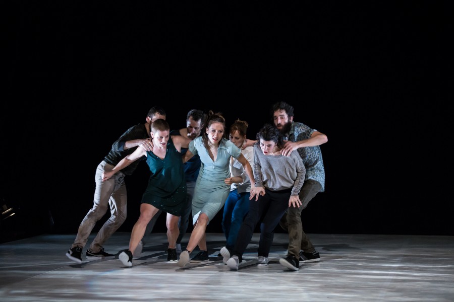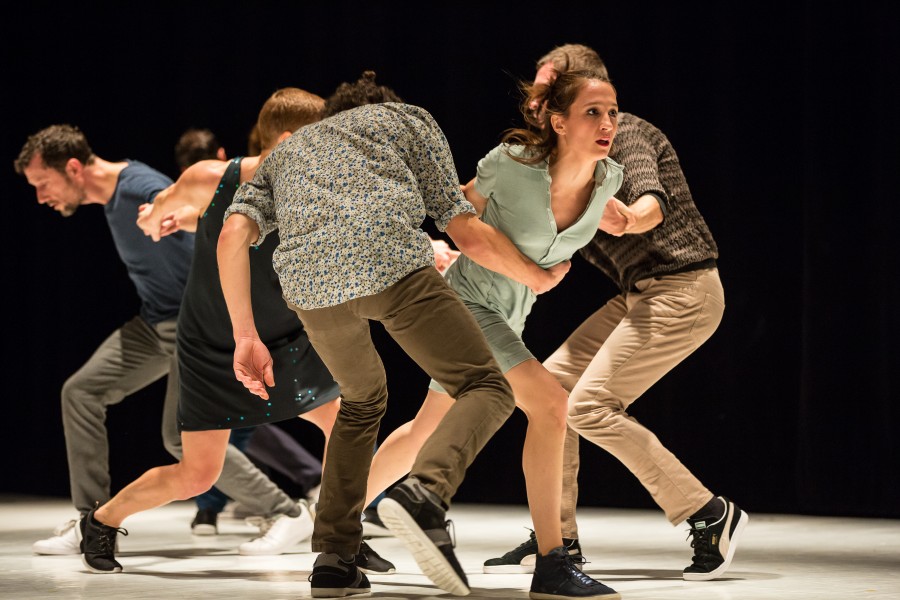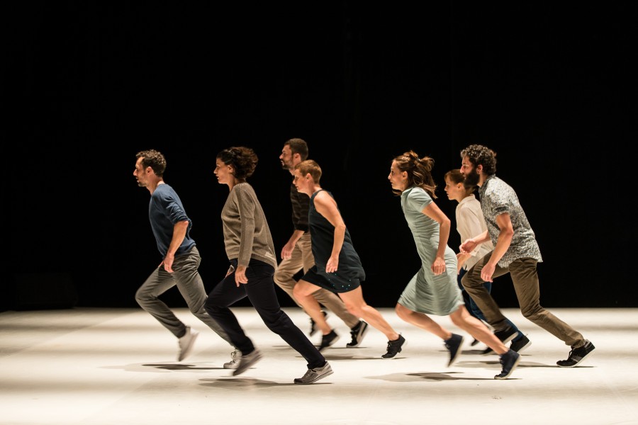 Sur une envoûtante musique électro ponctuée de revigorantes fanfares, Bruno Pradet invente un univers sans machine ni décors, sans aucun accessoire, où la seule mécanique visible est celle des corps de gens reliés par d’indéfectibles pulsations.