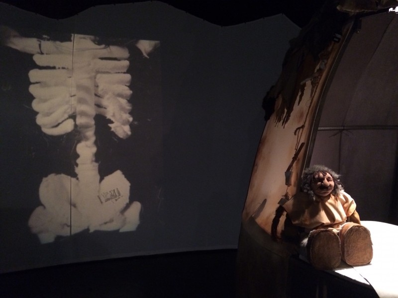 La scénographie nous plonge dans l'immensité du Grand Nord et plus particulièrement dans l'intimité d'une tente de peau et de bois placée au milieu de la toundra glacée. Le spectacle enchevêtre la narration, la manipulation d'objets, le théâtre d'ombres, le jeu marionnettique et la musique jouée en direct. Par la force des images, on pénètre dans un univers où tout est possible, un monde où les corbeaux parlent, où l'amour anéantit la mort, où les mythes disent la vérité. Ce conte initiatique offre une profondeur philosophique à qui veut bien se laisser toucher.