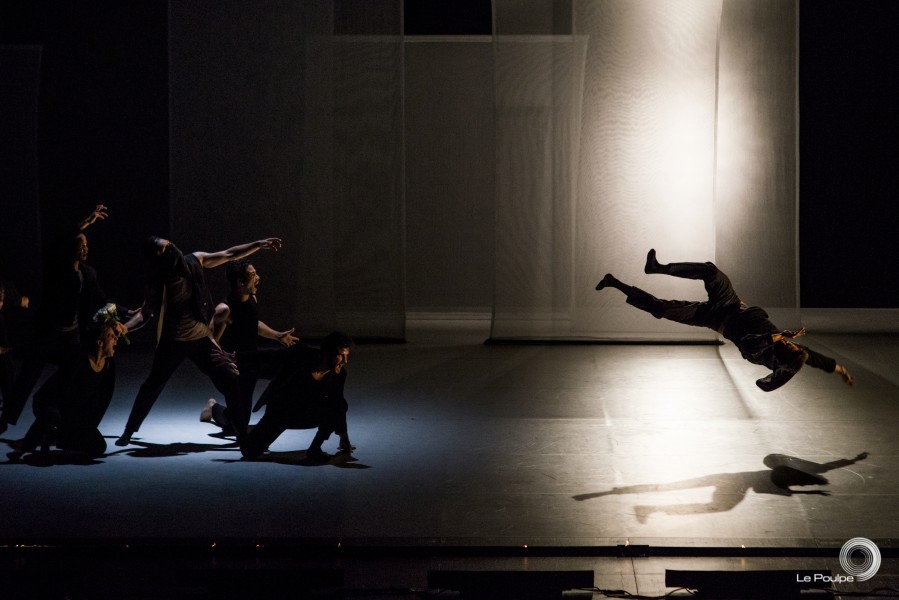« Si la danse hip-hop était une couleur, elle serait le rouge ! » C’est de cette affirmation qu’est né le spectacle de Mickaël Le Mer. Et pourtant, pas de rouge sur le plateau. Ni dans les costumes noirs et élégants des sept danseurs, ni dans le sobre espace dans lequel ils évoluent : sol et panneaux blancs. Ici, le rouge s’exprime par la danse, avec passion et intensité.
