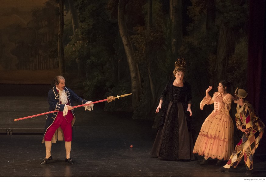 On en suit les rebondissements à travers une habile reconstitution de cette « guerre de censure » qui menace sans cesse la fable d’interruption. Improvisations, lazzi, pantomimes et participation du public ponctuent, comme à l’époque, un opéra résolument joyeux.