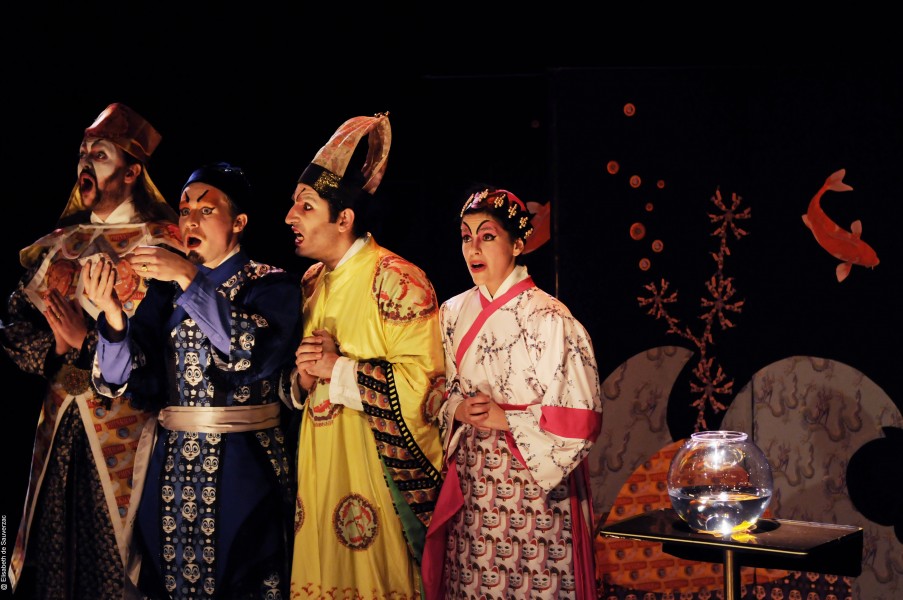 avec Artavazd Sargsyan, ténor (Fé-Ni-Han), Enguerrand de Hys, ténor (Ké-Ki-Ka-Ko), Jenny Daviet, soprano (Fé-An-Nich-Ton), Olivier Naveau, baryton (Ko-Ko-Ri-Ko) | Les Tromano : Yorrick Troman, violon; Daniel Troman, accordéon; Herng -Yu Pan, contrebasse | Flavien Airault, percussions | illusionniste Rémy Berthier | dramaturge Pierre Méchanick | transcription Yorrick Troman | costumes Elisabeth de Sauverzac | lumière et scénographie Lucie Joliot