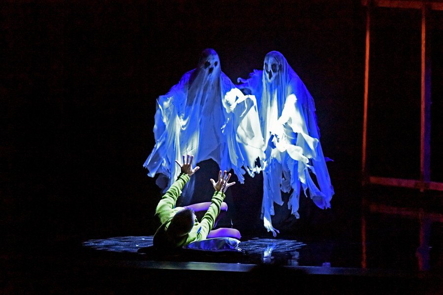 Toute la machinerie du théâtre est au service du récit : un décor ingénieux, des costumes magnifiques, une création lumière et une création sonore pour s’amuser à se faire peur…