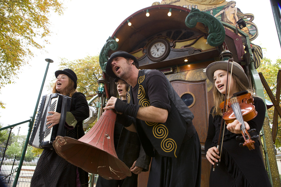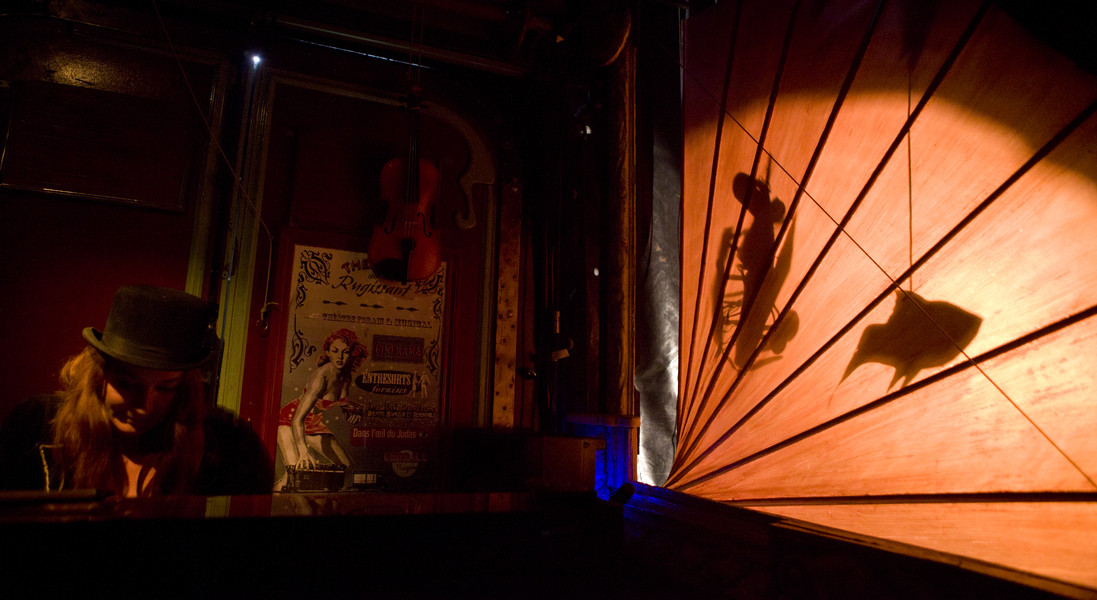 Dans l’esprit des entresorts forains, le public est invité à entrer dans une magnifique roulotte parée de lampes et agrémentée d’une véritable lanterne de phare qui, la nuit, balaye la ville de ses rayons.