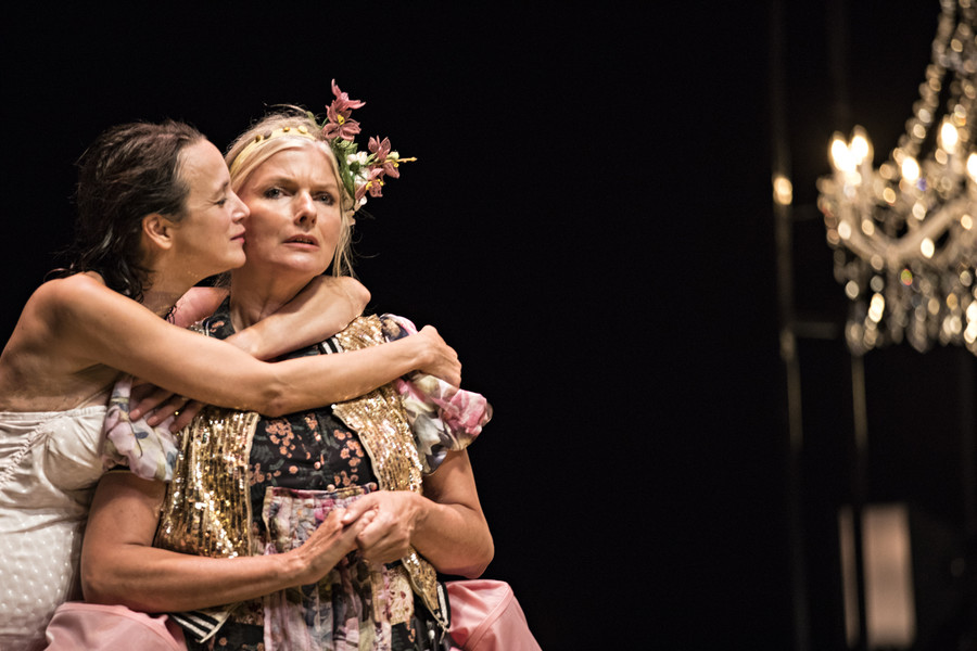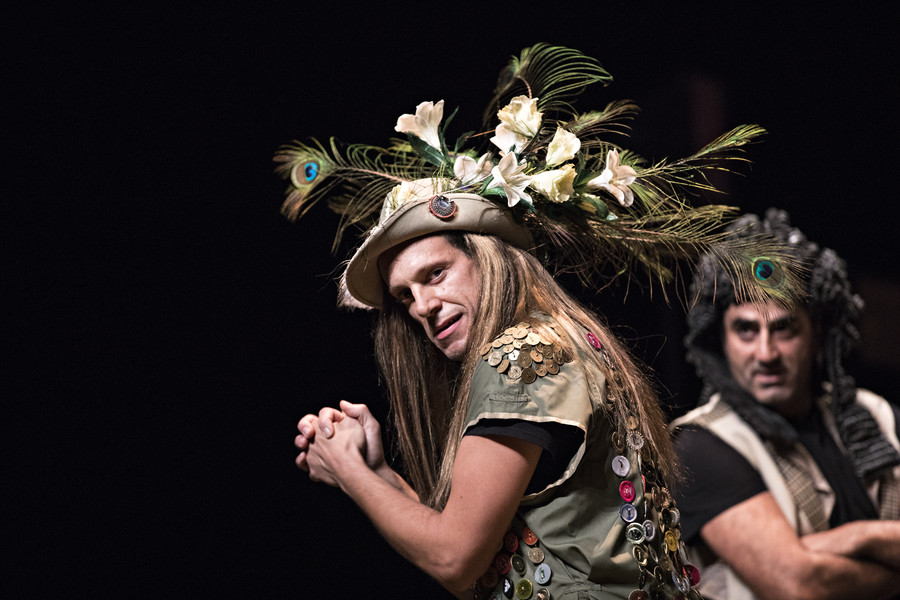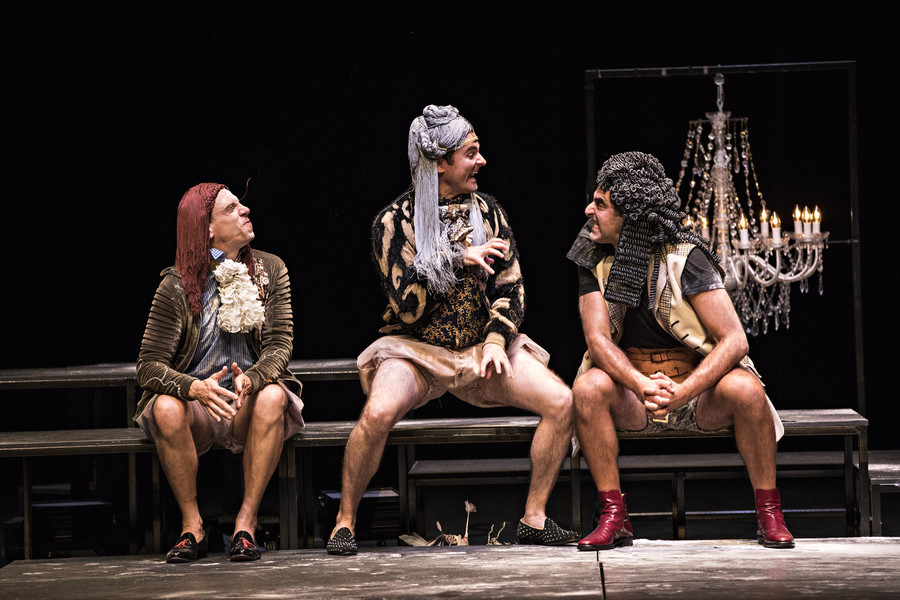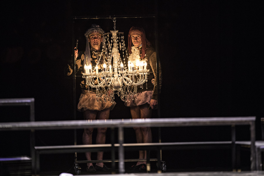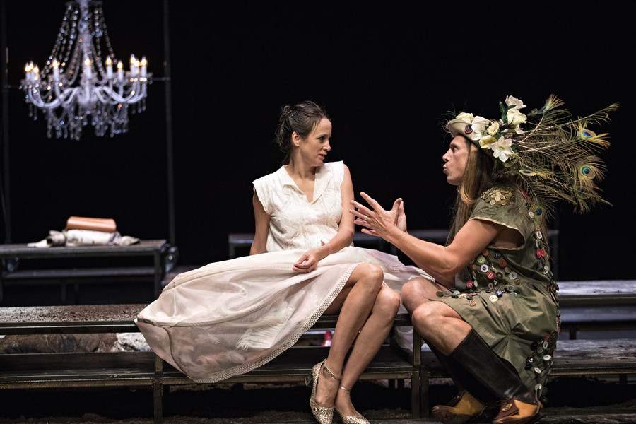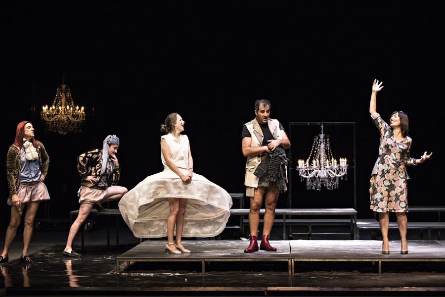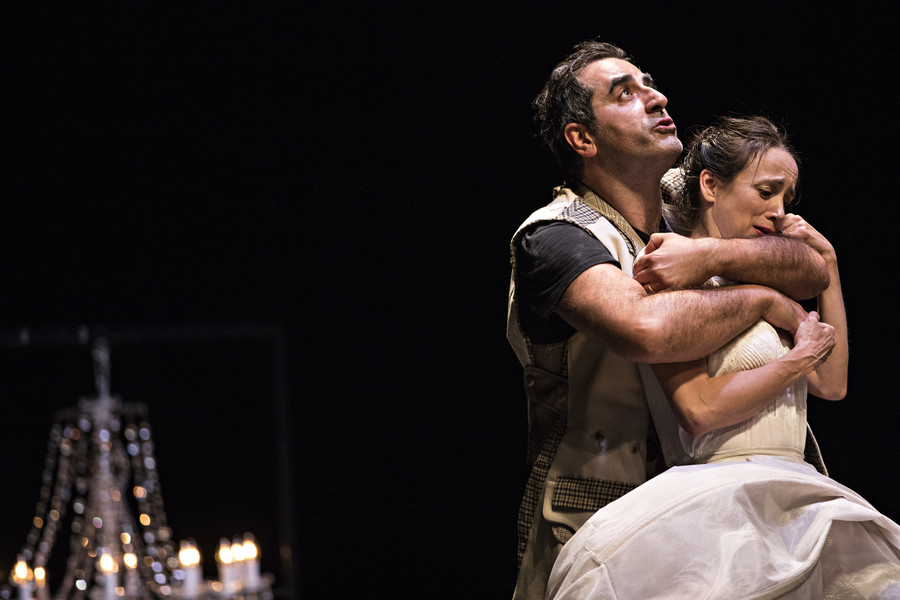 Ceux qui connaissent l’univers du collectif Les Possédés, déjà plusieurs fois programmé au Bateau Feu, se doutent bien que Rodolphe Dana n’a pas signé une version académique du Misanthrope. Soulignant la farce qui se joue, et dont Alceste est la fois l’instigateur et le dindon, le metteur en scène préfère en effet éclairer la noirceur burlesque de la pièce. Affublés de costumes ridicules qui renforcent la bouffonnerie des personnages, les sept comédiens déploient un jeu physique et engagé qui électrise chaque scène. Se réservant le rôle-titre, Rodolphe Dana compose un Alceste hypersensible, féroce et drôle. Philinte est interprété par l’épatant Maxence Tual, l’un des piliers du collectif Les Chiens de Navarre. Quant à Émilie Lafarge, elle incarne une Célimène belle et vénéneuse à souhait.