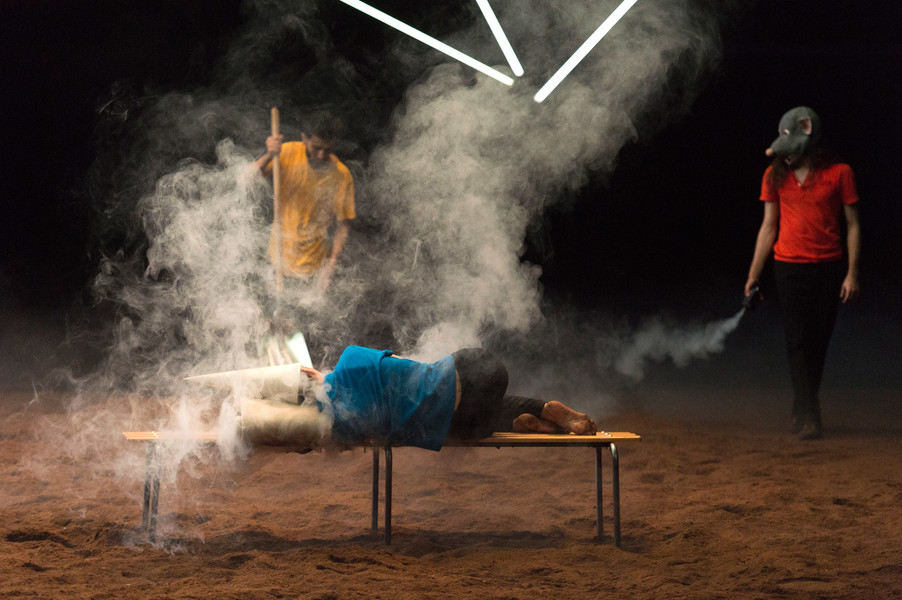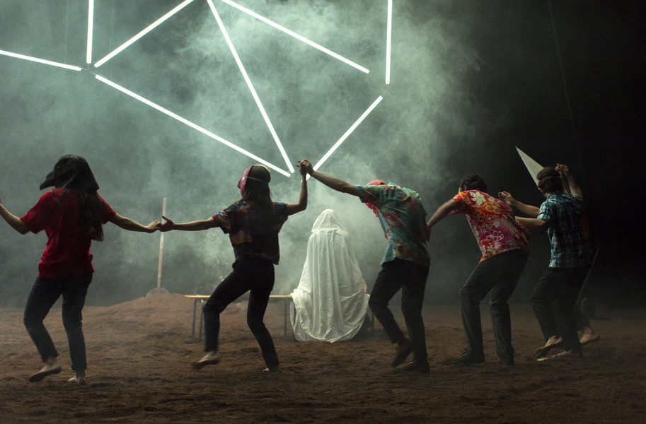 Dans cette « maison de la danse », Christian Rizzo convie des hommes et des femmes de tous âges et traverse la question du collectif face aux solitudes. Cette belle communauté humaine, corps commun protéiforme, se nourrit des arrivées des uns et des départs des autres, dans un flux continu de mouvements où les errances solitaires sont contredites par de joyeuses bousculades. Plus tard, le spectacle prend une tout autre dimension : le plateau devient forestier, les vêtements passent progressivement du noir à la couleur, de grands chapeaux pointus et d’étranges masques couvrent les têtes et les visages. Dans ce carnaval fantastique, entre Goya et Ensor, on se prend les mains pour une émouvante farandole jusqu’à la surnaturelle apparition finale. Un chef-d’œuvre plastique et chorégraphique !