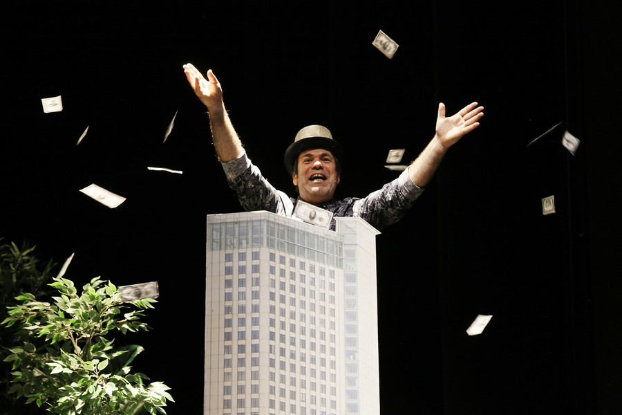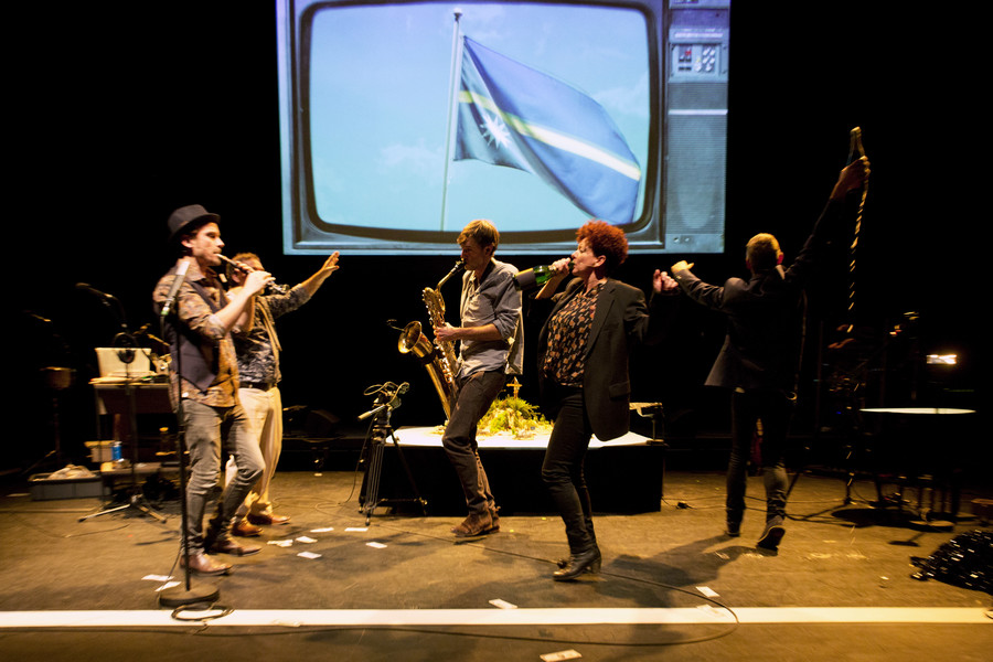 Heureusement, le nouveau spectacle des Belges impertinents du Collectif Mensuel ne se prend jamais au sérieux. Trois comédiens, deux musiciens et une débauche d’énergie, tous les moyens sont bons pour raconter et dénoncer joyeusement la surexploitation de la planète. Le mélange inventif de musique, de séquences télé braconnées, de théâtre, d’objets manipulés, de vidéos montées en direct, de bruitages et de faux dialogues fait mouche. En décalant le propos avec un humour efficace, cette fin du monde et la grande panique qui l’accompagne ressemblent plutôt à un feu d’artifice d’une réjouissante vitalité.