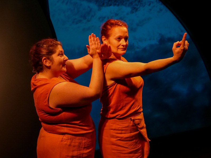 mise en scène Emmanuelle Laborit | jeu Julia Pelhate et Isabelle Voizeux | dramaturge / oreille extérieure Alessandro Gazzara | créateur lumière Samy Hidous | créateur son Gilles Normand | créatrice vidéo Virginie Premer | créatrice costumes Louise Watts | créateur masques Alaric Chagnard | créateur ombromanie Philippe Beau | créatrice théâtre d’ombre Aurélie Morin | habilleuse Constance Grenèche | un spectacle de IVT - International Visual Theatre