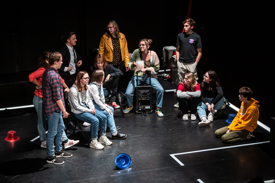 Lors de trois résidences menées cette saison au Bateau Feu (en octobre, janvier, mars et avril), Chloé Simoneau, metteuse en scène, comédienne et membre du collectif l a c a v a l e, et Thomas Piasecki, auteur et metteur en scène du Spoutnik Theater, ont accompagné ces jeunes âgés de 16 à 20 ans.
