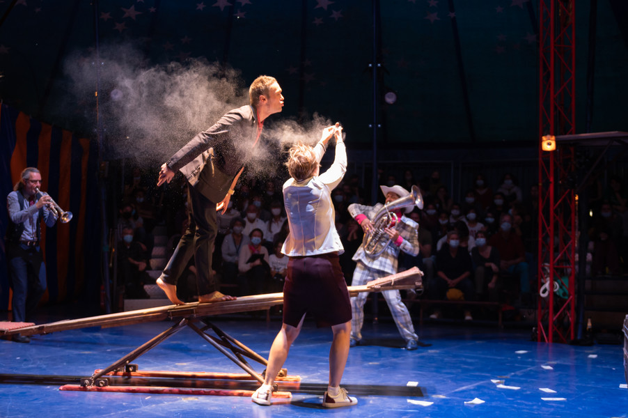 Les douze circassiens et musiciens inventent sous leur chapiteau une ville imaginaire à travers une succession de tableaux poétiques et burlesques.
