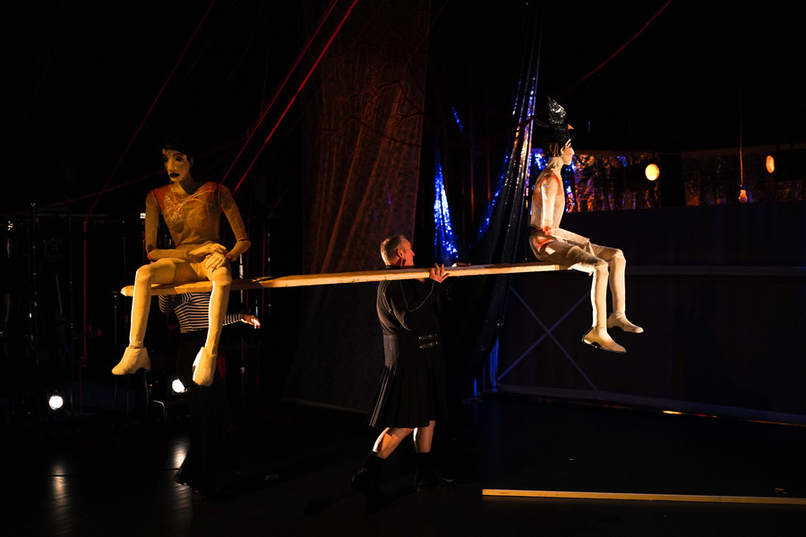 mise en scène Brice Berthoud avec Marie Girardin | marionnettistes en déséquilibre Camille Trouvé, Jonas Coutancier | créateurs d’images et de lettres en direct Amélie Madeline en alternance avec Vincent Croguennec | l’homme échelle Philippe Desmulie | dramaturgie Saskia Berthod | composition musicale Jean-Philippe Viret | quatuor à cordes Jean-Philippe Viret (contrebasse), Mathias Lévy (violon), Maëlle Desbrosses (alto), Bruno Ducret (violoncelle) | scénographie Brice Berthoud avec Adèle Romieu | création et construction marionnettes Camille Trouvé, Jonas Coutancier, Amélie Madeline, Séverine Thiébault, Caroline Dubuisson | création costumes Séverine Thiébault | création sonore Antoine Gary avec Tania Volke | création lumière Brice Berthoud avec Louis De Pasquale