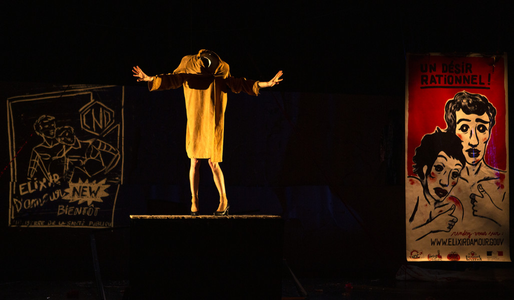 L’amour comment ça marche ? Pour le savoir, deux scientifiques plongent dans le corps humain. D’un organe à l’autre, ce voyage fantastique va les confronter au frisson, au plaisir, au manque, à la jalousie… bref aux mécanismes de la passion amoureuse. Un cœur qui bat tout seul, un Minotaure perdu dans son dédale, une meute de loups, un homme de papier, de saisissantes images croisent les mots du philosophe Roland Barthes. Marionnettes, projections, pop-up, ombres, théâtre d’objets et musique live, l’inventivité des Anges au Plafond semble sans limites. Ils explorent avec humour et poésie les labyrinthes de l’amour et du désir.
