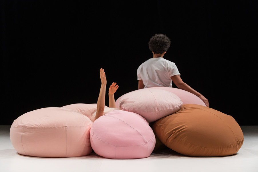 Assis sur le plateau, au plus près des deux interprètes, les enfants découvrent un espace parsemé de drôles d’objets « sculptures », des gros, des moyens et des petits. En jouant avec ces volumes, tout doux et tout mou, les danseurs invitent les tout-petits à vivre une belle aventure sensorielle. Ainsi, les enfants suivent le spectacle avec l’entièreté de leur corps. Ils peuvent voir, sentir, toucher, et vivre intensément leur première expérience avec le spectacle vivant.