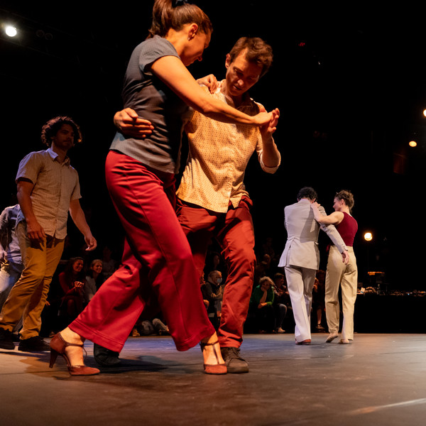 Quand le cirque rencontre la danse ! Au milieu du public, neuf circassiens se lancent dans une série de prouesses acrobatiques à couper le souffle. Tandis qu’un DJ clownesque diffuse d’irrésistibles musiques populaires, l’acrobatie devient danse et la piste parquet de bal. Petit à petit, sans s’en rendre compte, on se retrouve à danser avec les artistes, entraînés par le simple plaisir d’être ensemble : le doux vertige d’une chorégraphie collective, improvisée et festive.