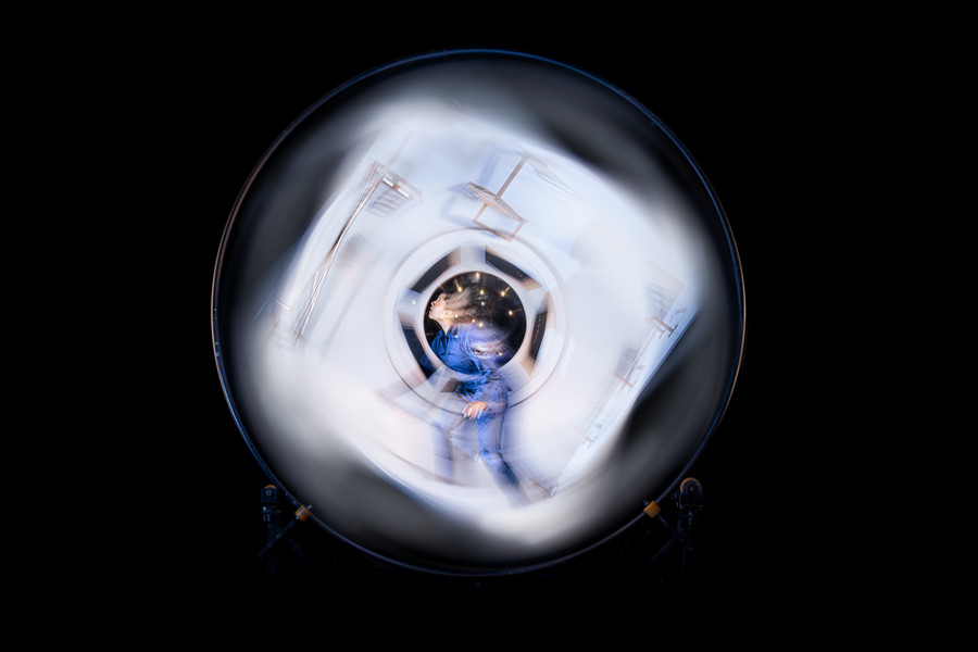 Toute seule dans sa minuscule capsule spatiale, une astronaute erre dans l’espace. Elle doit apprendre à vivre dans un habitat miniaturisé et instable, ballottée comme dans le tambour d’une machine à laver. Dans sa « mini MIR », elle fait pourtant le maximum ! Pieds en l’air, tête en bas, son corps est mis à rude épreuve : il faut s’habiller, étudier les astres, faire du sport, dormir, etc. Dans le décor astucieux de sa cabine, l’acrobate semble réellement en apesanteur. Une incroyable odyssée de l’espace pour petits et grands.