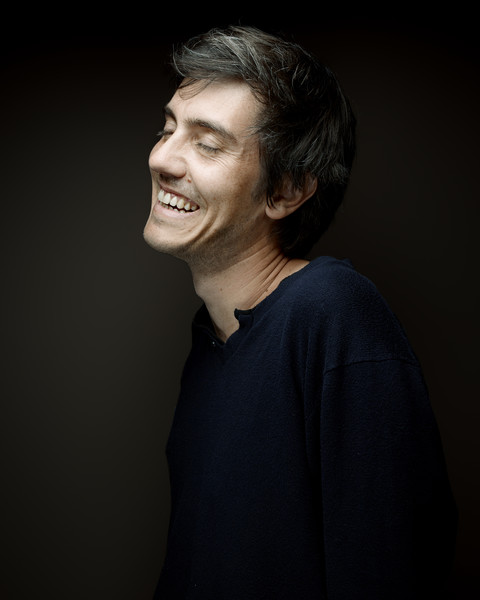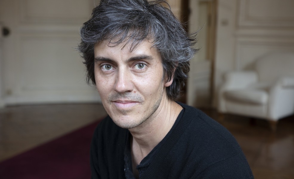 Dans un sourire teinté de mélancolie, Sylvain Prudhomme lit des extraits de son roman Par les routes, en compagnie de Samuel Hirsch (bassiste) et Fabien Girard (guitariste) du groupe afro-jazz Arat Kilo.