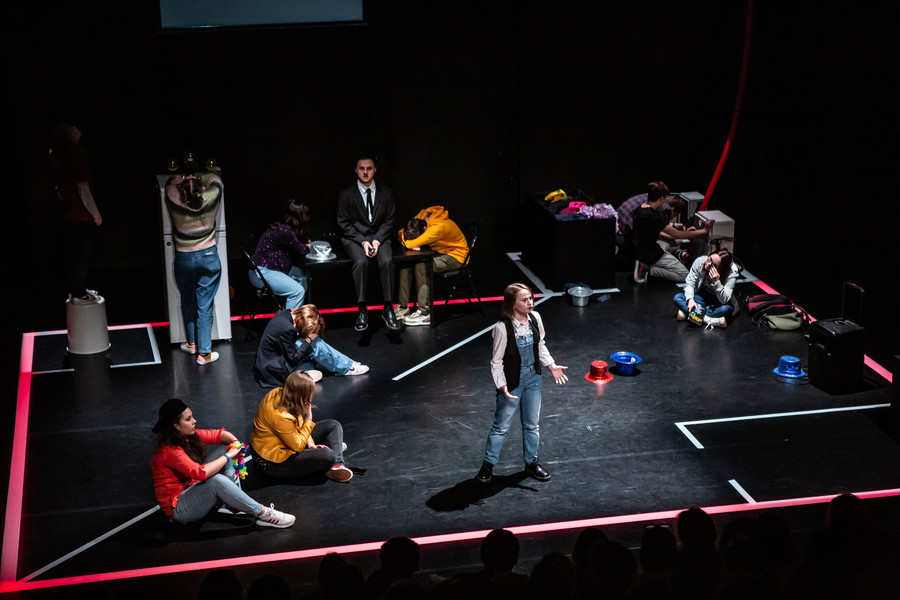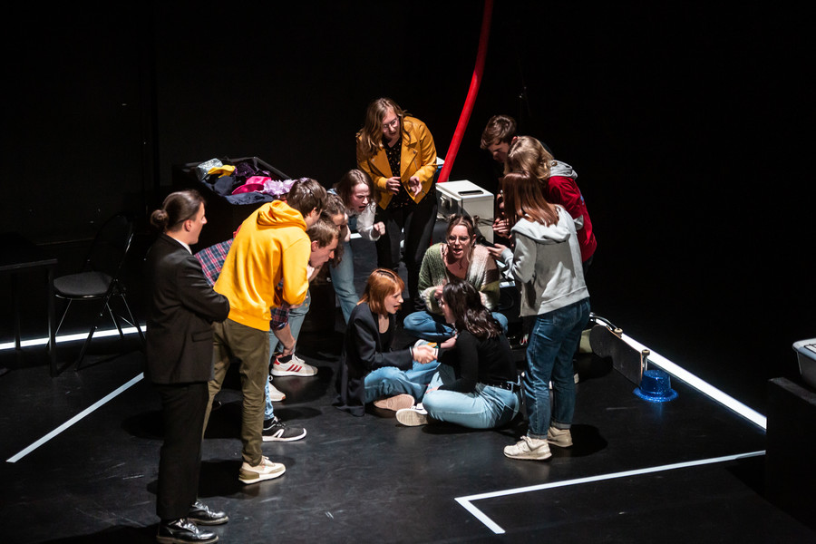 Lors de trois résidences menées cette saison au Bateau Feu (en octobre, janvier, mars et avril), Chloé Simoneau, metteuse en scène, comédienne et membre du collectif l a c a v a l e, et Thomas Piasecki, auteur et metteur en scène du Spoutnik Theater, ont accompagné ces jeunes âgés de 16 à 20 ans.