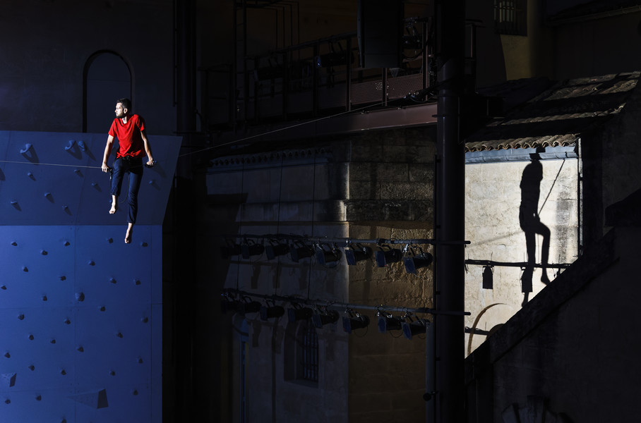 Rachid Ouramdane magnifie la rencontre entre huit acrobates experts en voltige et deux athlètes aventuriers du ciel : la grimpeuse Ann Raber Cocheril et le highliner Nathan Paulin. Face au mur d’escalade qui surplombe la scène, tous affrontent la gravité tandis qu’un environnement vidéo témoigne des incroyables paysages dans lesquels évolue cette communauté du monde aérien.