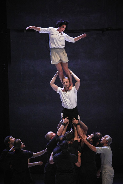Les dix-neuf acrobates constituent un ensemble vivant en perpétuelle mutation, comme ces nuées d'étourneaux aux formes mouvantes qui emplissent parfois le ciel et obéissent à des phénomènes de coordination et de synchronisation qui nous dépassent. En élevant des constructions humaines fragiles, toujours plus hautes et spectaculaires, le groupe des XY se fait et se défait dans un mouvement permanent qui repousse toujours plus loin les limites de la gravité.