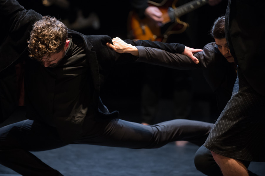 Neuf interprètes sur le plateau : cinq danseurs à fleur de peau, véloces, joyeux et troublants, qui fabriquent des danses singulières, virevoltant ensemble, entrant dans des battles sporadiques. Autour d’eux, deux chanteurs lyriques (une soprano et un contre-ténor) et deux musiciens qui font naviguer la pièce du répertoire baroque aux tonalités électro-rock. Neuf artistes qui appartiennent à la même communauté d’humains.