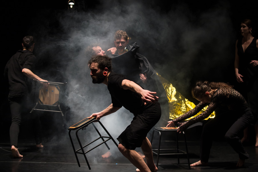 Neuf interprètes sur le plateau : cinq danseurs à fleur de peau, véloces, joyeux et troublants, qui fabriquent des danses singulières, virevoltant ensemble, entrant dans des battles sporadiques. Autour d’eux, deux chanteurs lyriques (une soprano et un contre-ténor) et deux musiciens qui font naviguer la pièce du répertoire baroque aux tonalités électro-rock. Neuf artistes qui appartiennent à la même communauté d’humains.