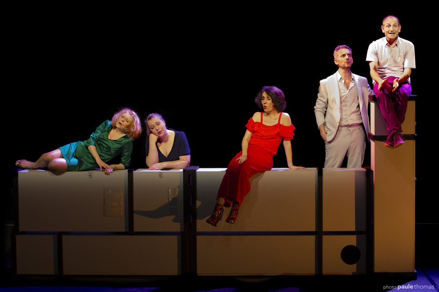 mise en scène Philippe Lelièvre assisté de Margot Dutilleul | chorégraphies Frédéric Jean-Baptiste | avec Pascale Costes, Karine Sérafin, Sandrine Mont-Coudiol, Patrick Laviosa et Fabian Ballarin | direction musicale Didier Louis | lumières Laurent Béal | son Mathieu Bionnet | scénographie Nils Zachariasen | costumes Claire Djemah