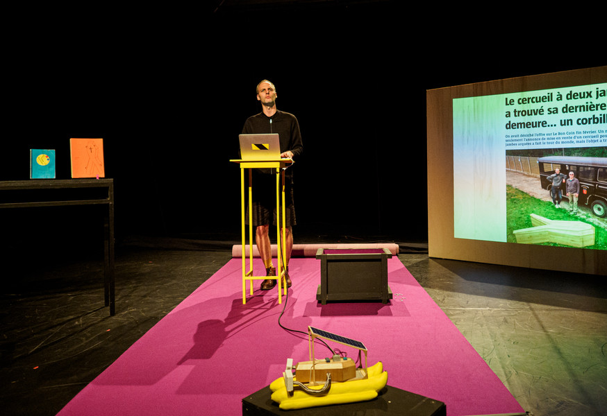 Philémon Vanorlé est un jeune artiste plasticien. À la suite de la production d’une de ses œuvres, tout à fait insolite il est vrai, il a vécu une drôle d’expérience. Seul en scène, il nous la raconte à sa manière en mêlant art contemporain, diaporama et carnet de croquis. Avec son flegme naturel, il rejoue avec beaucoup d’humour les péripéties cocasses de sa « drôle » de création artistique, entre institutions, sites de vente en ligne et réseaux sociaux... C’est absurde, décalé et réjouissant. Et, précisons-le… belge !