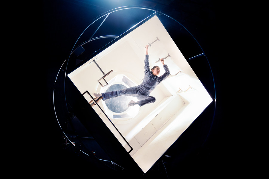 Toute seule dans sa minuscule capsule spatiale, une astronaute erre dans l’espace. Elle doit apprendre à vivre dans un habitat miniaturisé et instable, ballottée comme dans le tambour d’une machine à laver. Dans sa « mini MIR », elle fait pourtant le maximum ! Pieds en l’air, tête en bas, son corps est mis à rude épreuve : il faut s’habiller, étudier les astres, faire du sport, dormir, etc. Dans le décor astucieux de sa cabine, l’acrobate semble réellement en apesanteur. Une incroyable odyssée de l’espace pour petits et grands.