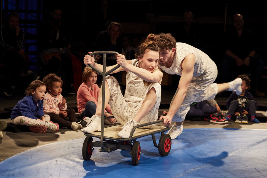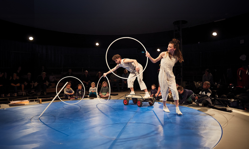 Sur une piste de cirque comme terrain de jeu, deux acrobates, un hula hoop et un chariot à roulettes s'entremêlent, pour ravir les yeux des tout-petits et des plus grands !