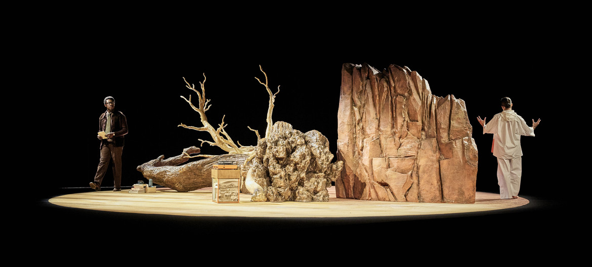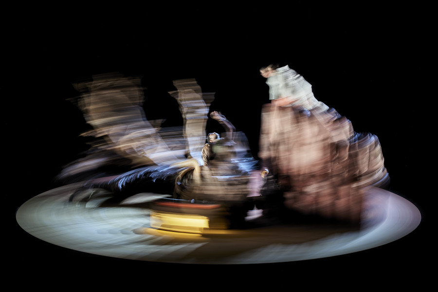 2077… Une partie de l’humanité survit sur Terre, l’autre s’est exilée sur Mars. Séparés par des millions de kilomètres, un père et sa fille tentent de préserver une fragile relation… Événement du dernier Festival d’Avignon, cette « histoire de science-fiction de l’intime » questionne les conséquences de nos choix et la difficile communication entre les générations. Alison Dechamps et Adama Diop jouent ce dialogue « à très longue distance » dans un impressionnant décor en rotation.