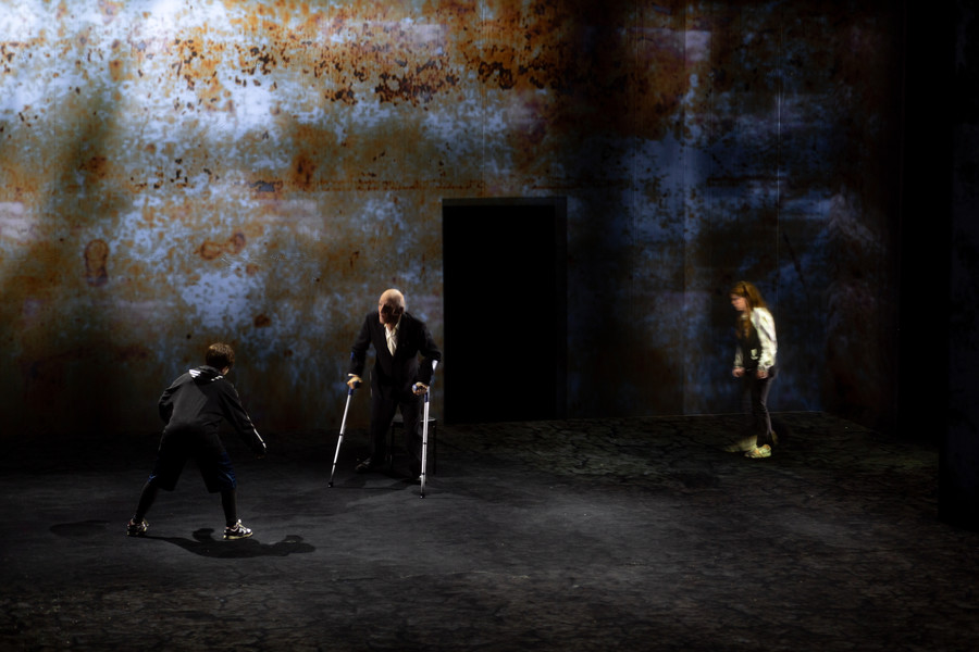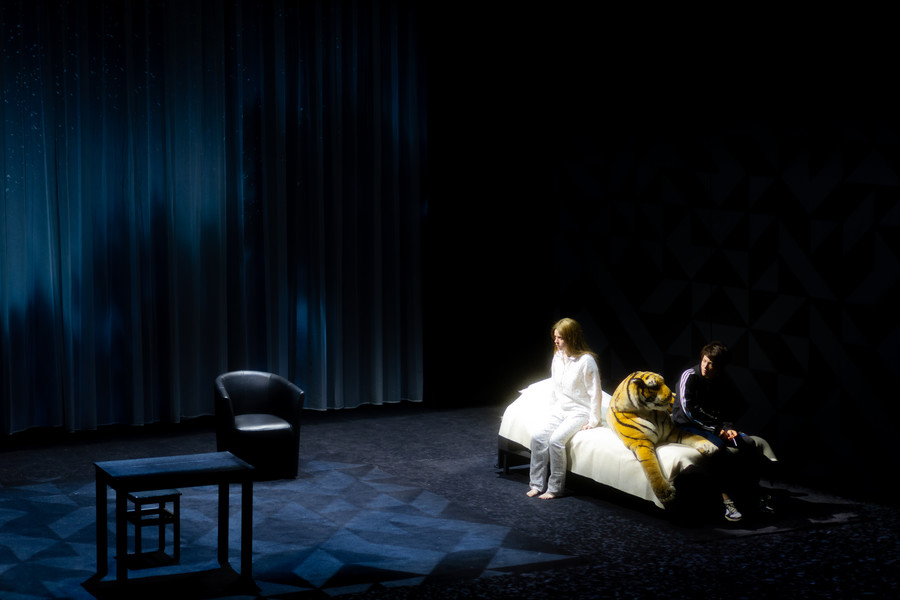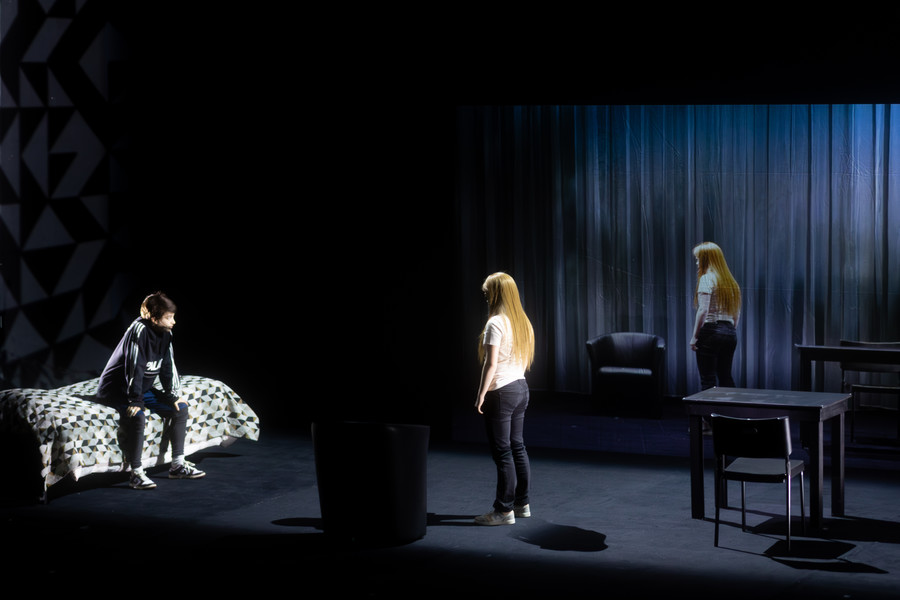 création théâtrale Joël Pommerat | avec Éric Feldman, Coraline Kerléo, Marie Malaquias | avec les voix de David Charier, Delfine Huot, Roxane Isnard, Pierre Sorais et Faustine Zanardo | scénographie et lumière Éric Soyer | création vidéo Renaud Rubiano | costumes Isabelle Deffin | perruques Julie Poulain | création sonore Philippe Perrin, Antoine Bourgain | musique originale Antonin Leymarie | collaboration artistique Garance Rivoal | assistanat à la mise en scène David Charier | renfort assistanat Roxane Isnard | collaboration à l’écriture Zareen Benarfa | comédien, participation au travail de recherche Pierre Sorais | direction technique Emmanuel Abate | direction technique adjointe Thaïs Morel | régie son Antoine Bourgain | régie vidéo Grégoire Chomel | régie lumière Gwendal Malard | régie plateau Pierre-Yves Le Borgne, Inês Correia Da Silva Mota | habillage Lise Crétiaux | réalisation maquette et accessoires Claire Saint-Blancat | construction accessoires Christian Bernou | renfort costumes Jeanne Chestier | renforts plateau Lior Hayoun, Faustine Zanardo | remerciements à Maurine Tainguy et Rose Trecan