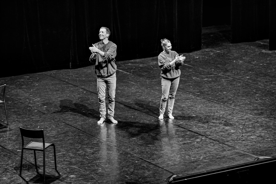 conception et interprétation Nicolas Chaigneau et Claire Laureau | regard extérieur Aurore Di Bianco et Marie Rual | créatrice lumière Valérie Sigward | musiques Johann Sebastian Bach, Gabriel Fauré, Kompromat, Mylène Farmer, Georges Gershwin