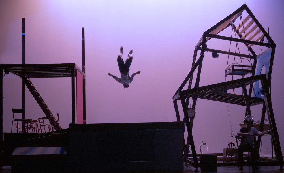 « Toi, t’es même pas cap de sauter du muret ! » Ben non, il n’est « pas cap » le jeune Icare. Il n’ose pas. Il n’ose jamais… Son père lui rappelle toujours de faire très très attention. Un jour pourtant, il va enfin oser se jeter dans le vide… Entre cirque, théâtre, musique et ombres projetées, ce conte d’aujourd’hui est une joyeuse quête identitaire. Dans un impressionnant décor, une trampoliniste, un comédien et une musicienne jouent ce spectacle poétique qui parle aux enfants, comme aux plus grands.