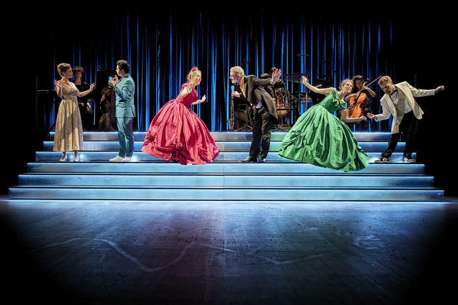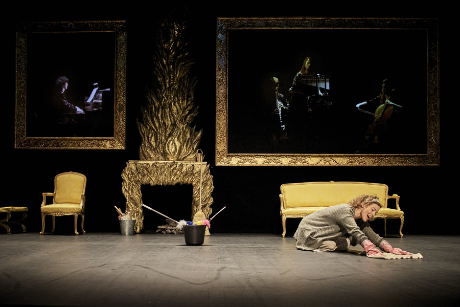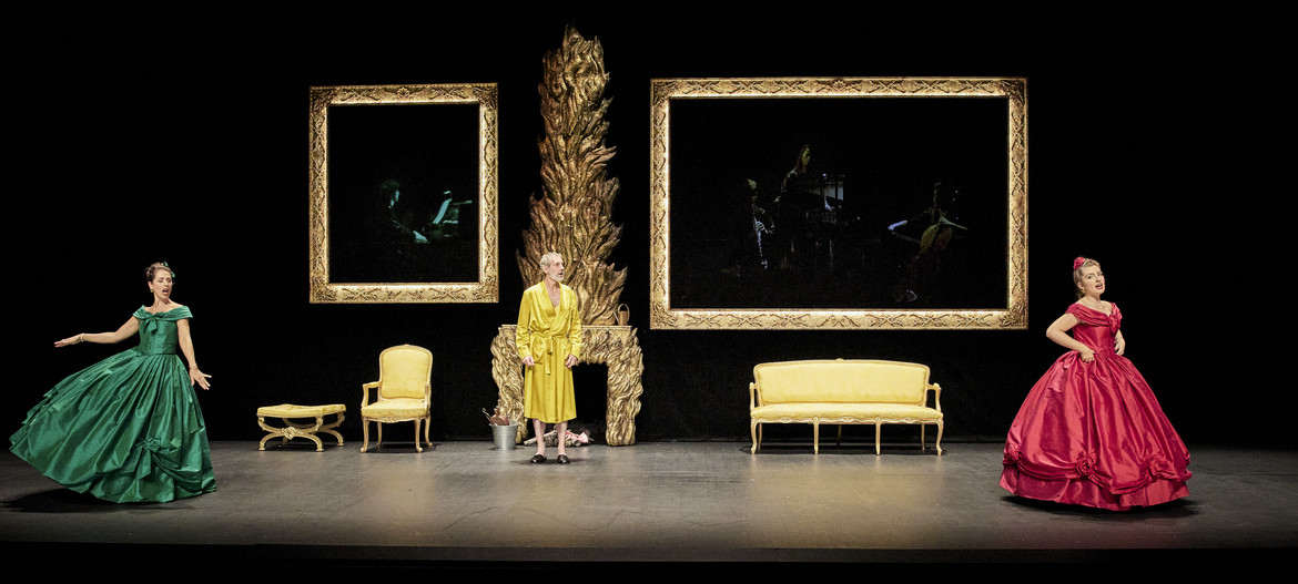 adaptation musicale Jérémie Arcache | adaptation du livret et mise en scène David Lescot | direction musicale et piano Bianca Chillemi | création scénographie Alwyne De Dardel | avec Louise Bourgeat-Roulleau (Cendrillon), Tsanta Ratia (Le Prince charmant), Clarisse Dalles (Maguelonne), Romie Estèves (Armelinde), Olivier Naveau (Le Baron de Pictordu), Lila Dufy (La Fée), Enguerrand de Hys (Le Comte Barigoule) | instrumentistes Clotilde Lacroix (violoncelle), Clément Caratini (clarinette), Théo Lamperier (percussions) | fabrication décors et costumes Opéra de Rennes | création costumes Mariane Delayre | création lumières Matthieu Durbec | création vidéo Serge Meyer | création maquillage Agnès Dupoirier | assistante mise en scène Mona Taïbi | assistante scénographie Sasha Walter | insertion musicale Stripsody de Cathy Berberian
